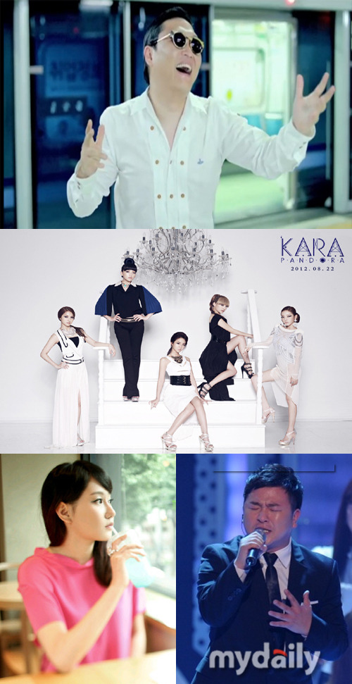写真=YGエンターテインメント、DSPメディア、LOENエンターテインメント、マイデイリー DB23日午前、各種音楽サイトチャートの上位圏には、PSYの6thアルバムのタイトル曲「江南スタイル」とKARAの5ndアルバム「PANDORA」、ホ・ガク&ZIAのデュエット曲「I Need You」が三つ巴の戦いを見せている。
