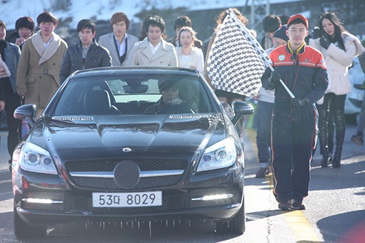 撮影が行われたレーシングサーキットは、用意された数十台の自動車と数十人のスタッフでいっぱいになった。それだけでなく、レースシーンを表現するためのセットや小道具が大量に投入されて、大規模の撮影となった。