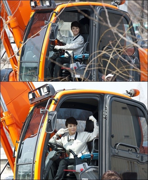 作業服姿のキム・ヘスは、自由自在にショベルカーを操縦し、撮影現場の関係者らに感心されるほど優れた実力を見せたという。
