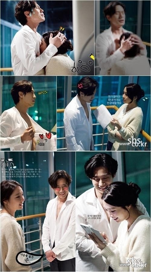 写真=SBSSBSは10日、シン・ハギュンとイ・ミンジョンの胸元キスシーンの撮影現場の写真を公開した。