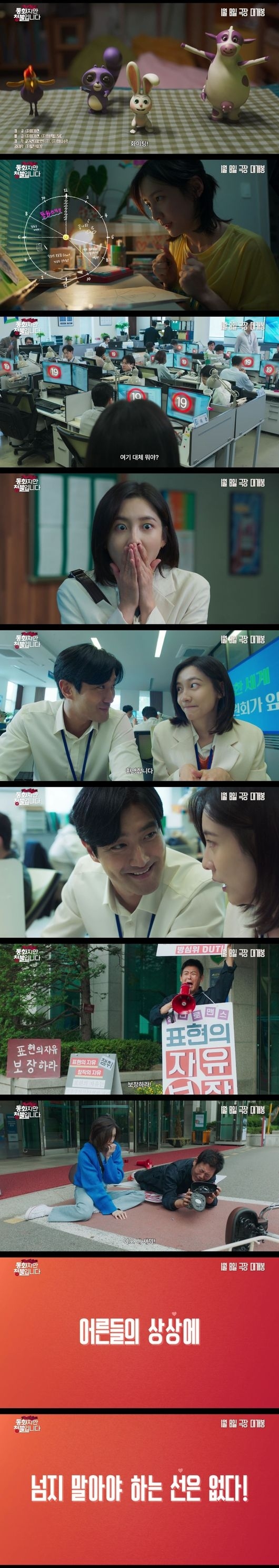 写真=写真=「童話ですが、青少年は観覧不可です」予告映像キャプチャー続けて「表現の自由を保障せよ!」と1人でデモをしていたファン代表との事故をきっかけに、タンビは1億ウォン(約1,000万円)という賠償金の代わりに19禁ウェブ小説を執筆することになる。これまで童話だけを書いてきたタンビは、19禁小説の執筆に悩まされ、ジョンソクの助けで不埒なストーリーを書きながらも、2人の関係が発展していくことも匂わせている。果たしてタンビはこの問題を解決して絵本の作家としてデビューできるか好奇心をくすぐる一方で、「大人たちの想像に越えてはならない線はない!」というフレーズを通じて彼女が意外な才能に気づき始める様子も予告している。