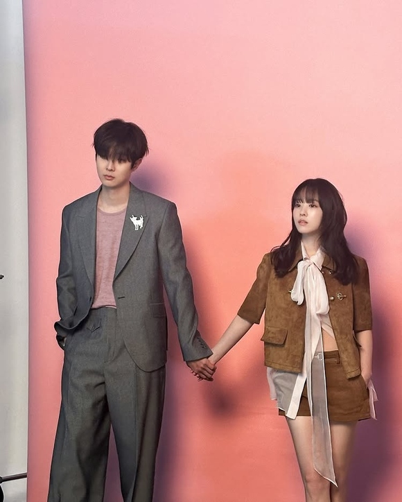2人はバックハグの状態で顔を近づけながら笑みを浮かべ、恋人のような雰囲気を漂わせている。特に、妖精のような愛らしいパク・ボヨンのビジュアルが目を引く。