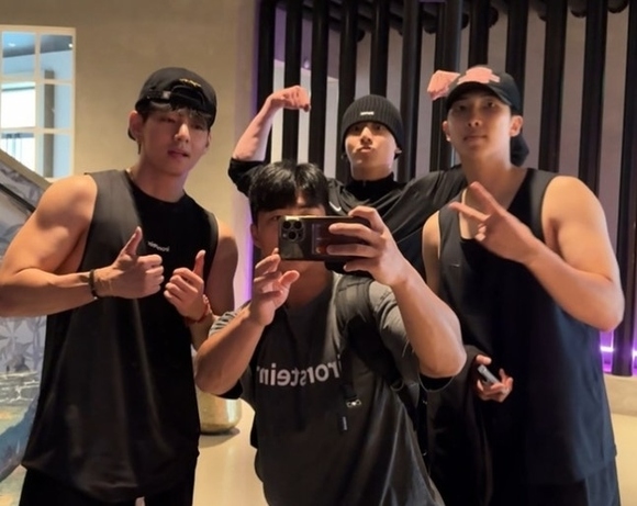 また、BTSのRM、V、ジョングクと撮った写真も公開し、「LA合宿トレーニング3日目の時 ナムジュン(RMの本名)、テヒョン(Vの本名)、ジョングク」と付け加えた。