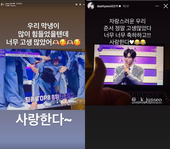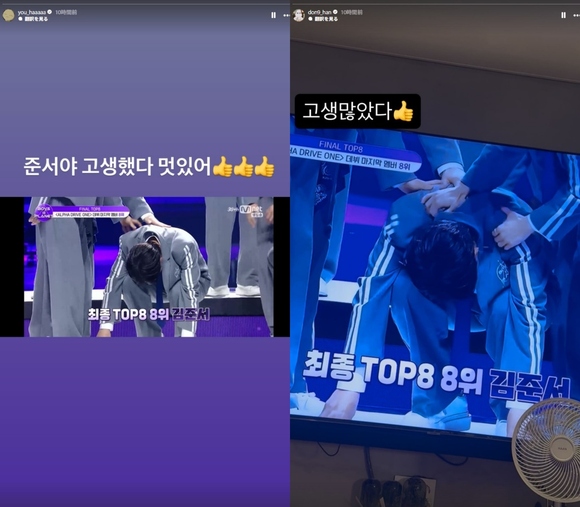 キム・ドンハンは親指を立てた絵文字と共に「ご苦労さま」と一言添え、ユ・ヨンハも「ジュンソ、お疲れ様。かっこいいよ」と喜びをリアルタイムで伝えた。