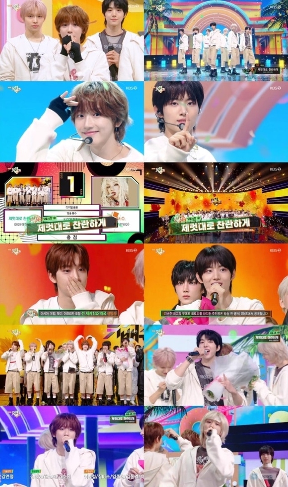 メンバーたちは事前に明かしていた、冷却シートを貼ってクンジョル(跪いてするお辞儀)をするという1位の公約を履行するため、冷却シートを取り出して貼りながらも、揺るぎない生歌で「勝手にきらびやかに」を披露。おでこや首などに冷却シートを貼って歌いながら1位の喜びをかみしめるIDIDの爽やかな魅力が目を引いた。