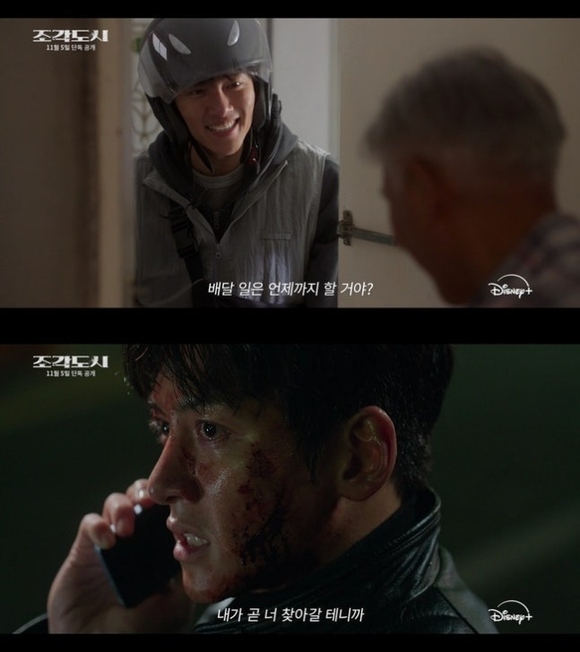 一方、素早く展開していく画面を通してテジュンを見守っているようなヨハンの鋭い眼差しは、果たして彼が何を考えているのか、好奇心を倍増させる。「なぜ僕にこんなことが起こったのか、よく分からない」と刑務所で惨めに崩れ落ちるテジュンのセリフは、彼の冤罪状況への切なさと共感を呼び起こし、視聴者をテジュンの状況に没入させる。また、「私に電話をくださったのは、とても良いことをなさいました」と狂気に満ちた笑顔を見せるヨハンの姿は、ディオが披露する新たな悪役の顔がどのような姿なのか、期待を倍増させる。「正体も顔も分からない。しかし必ず捕まえる」というコピーと共に繰り広げられる手に汗を握るカーチェイスシーンと、壮大なスケールの爆発シーンは、爽快なカタルシスを届け、「捏造された都市」だけの華麗なスペクタクルへの期待感を高める。