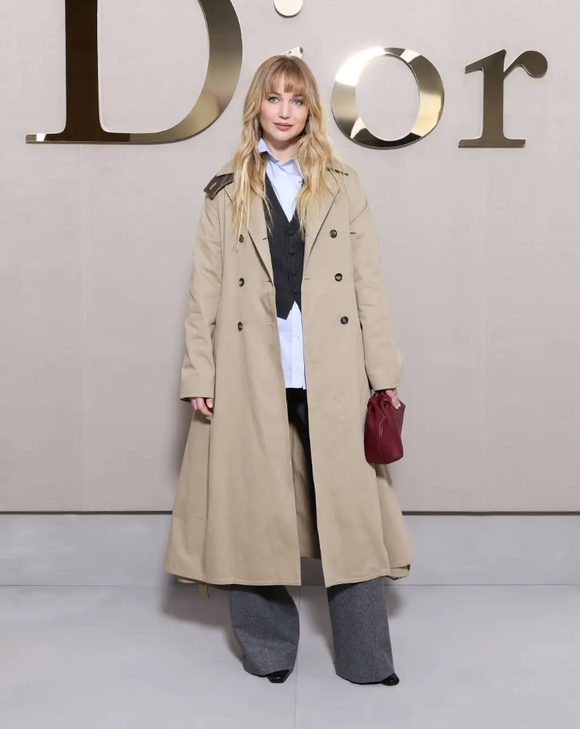 ジェニファー・ローレンスはブラックのウールベスト、ブルーのコットンシャツ、グレーのウールパンツを纏い、ベージュコットンのトレンチコートを羽織った。シャーリーズ・セロンは、ブラックレザーのジャケットにカーキのコットンショーツを着用した。