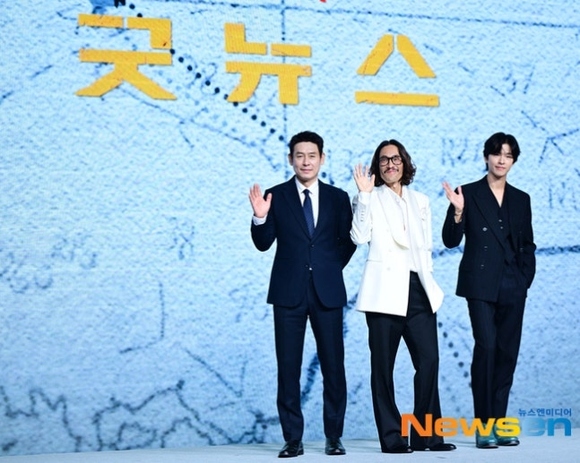 TOPPHOTO【PHOTO】ソル・ギョング&ホン・ギョン&リュ・スンボム、映画「グッドニュース」制作報告会に出席(動画あり)2025/10/14 12:3314日午前、ソウルJWマリオット東大門(トンデムン)スクエアのグランドボールルームにて、映画「グッドニュース」の制作報告会が行われ、俳優ソル・ギョング、ホン・ギョン、リュ・スンボム、ピョン・ソンヒョン監督らが出席した。MCはパク・キョンリムが務めた。同作は1970年、どんな手を使ってでも、ハイジャックされた飛行機を着陸させるために結集した人々の、怪しい作戦を描く。・ホン・ギョン、山田孝之らと共演…日本語での演技に初挑戦「ひらがなから勉強した」・【PHOTO】山田孝之「釜山国際映画祭」に登場!ホン・ギョン&ピョン・ソンヒョン監督と開幕式のレッドカーペットにもっと見る元記事配信日時 : 2025/10/14 11:40記者 : イ・ジェハTweetシェアするtopics#グッドニュース#ソル・ギョング#ホン・ギョン#リュ・スンボム#パク・キョンリム