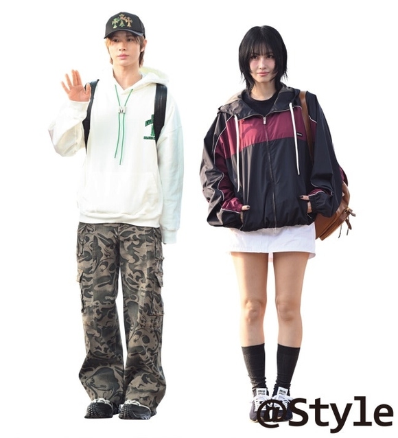 TWICEのモモは、秋の雰囲気が漂うカラーのウィンドブレーカーでスポーティーなムードを演出した。オーバーサイズのアウターにホワイトのミニスカートを合わせて軽快さを活かし、濃い色のソックスとスニーカーでY2Kファッションを完成させた。バッグを肩にかけ、キャンパススタイルまで演出したスタイルだ。
