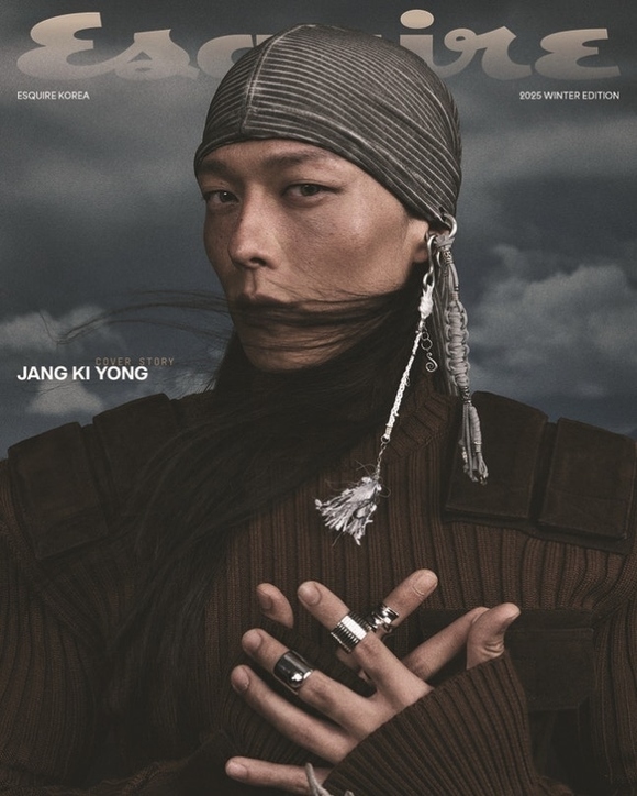 写真=Esquire公開された写真の中でチャン・ギヨンはディストピア映画を連想させる独特なセットと衣装を着こなした。