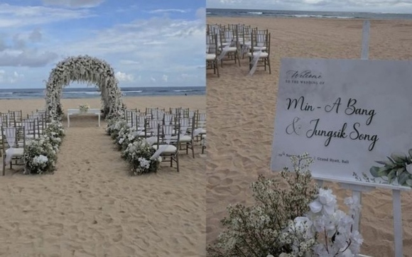 ミナとオン・ジュワンは先月29日、バリの5つ星ホテルリゾートで結婚式を挙げた。彼らはホテルのプライベートビーチに設けられた屋外結婚式場でシーサイドウエディングを行い、夫婦の縁を結んだ。
