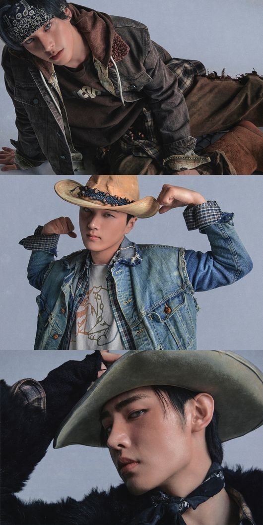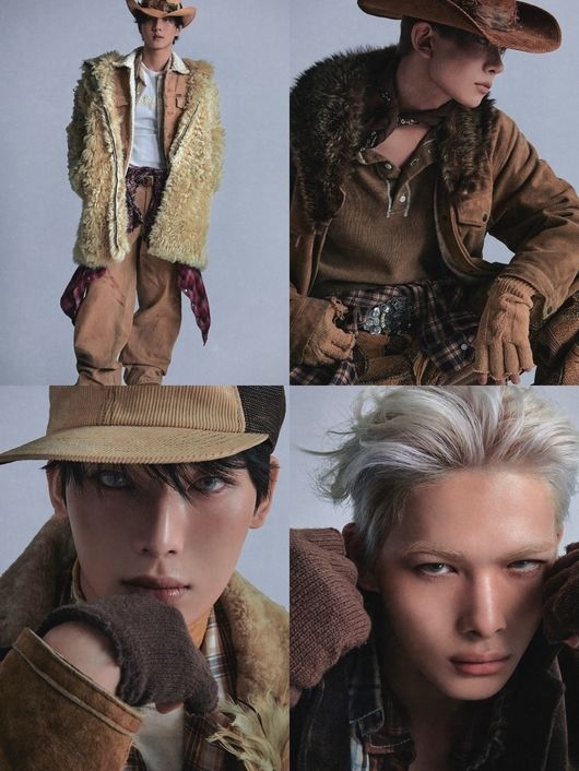 ENHYPENは、“現代版カウボーイ”に変身。古典ウェスタン映画を連想される衣装に現代的なストリートファッションの要素を加味し、荒野の上の荒くも洗練されたスタイルを完成させた。定形化されていないレイヤードスタイルは、7人のメンバーの個性を最大化する。