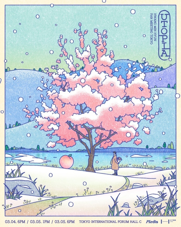 (P)&(C) PLEDIS Entertainment「HWANG MIN HYUN FAN MEETING [UTOPIA] - TOKYO」は、2月6~8日にソウルで行われた後、日本で公演が行われる予定だ。タイトルの「UTOPIA」は「桃の花が咲く園」という意味で、ファン・ミンヒョンとファンド(ファンダム名)が共にするユートピアを表す。今回の公演は、ファン・ミンヒョンとファンドが再会する理想的な楽園となる予定だ。