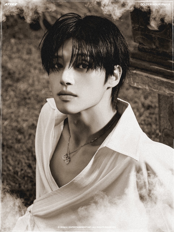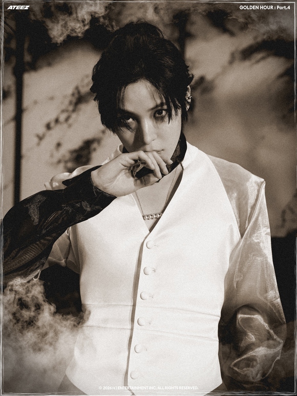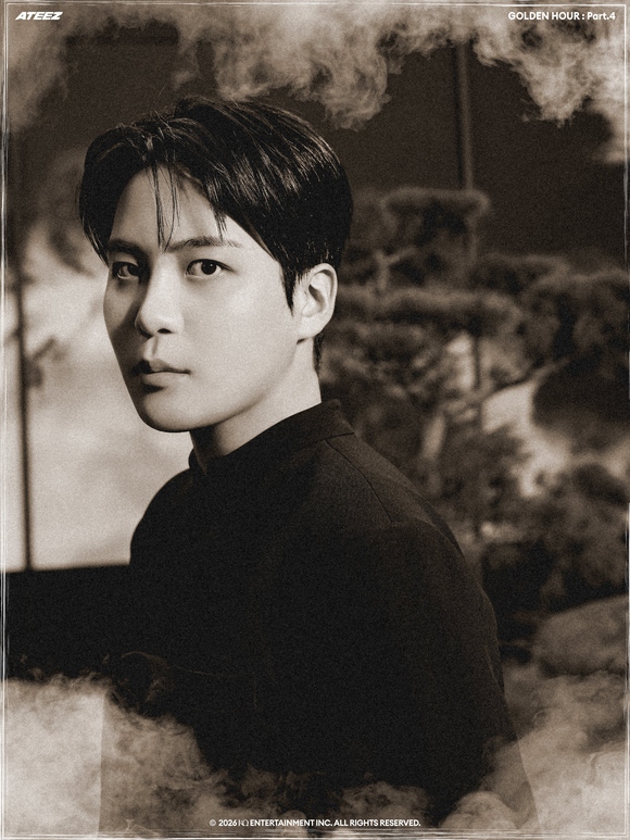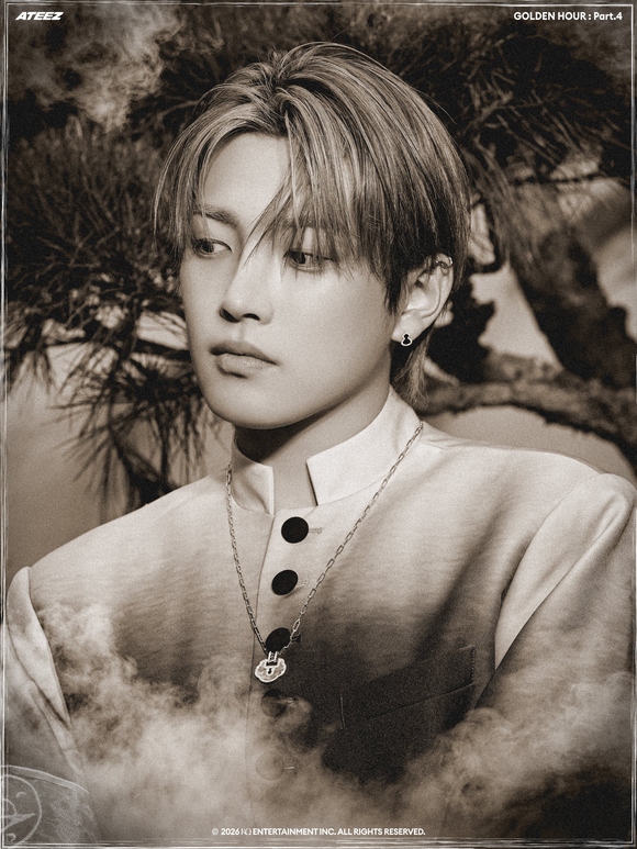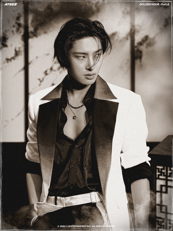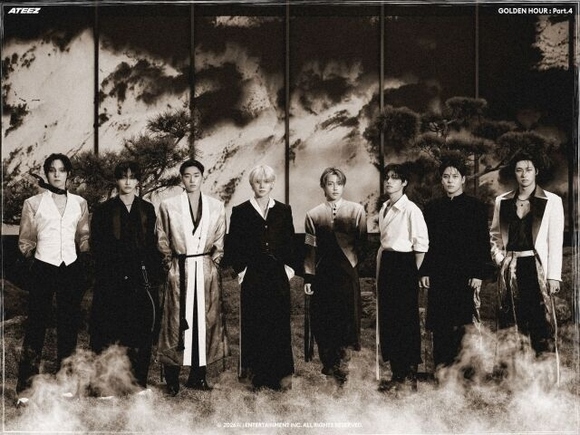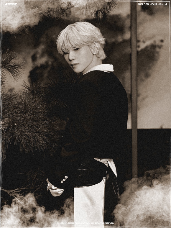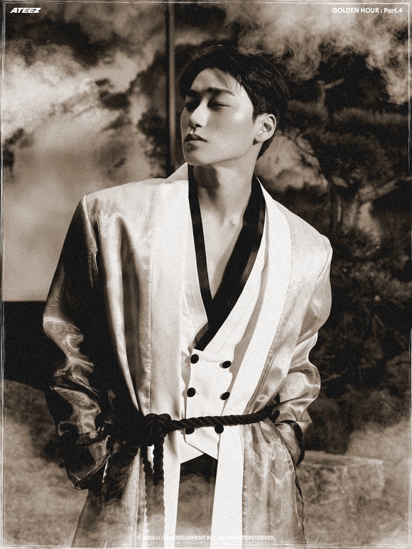 公開されたコンセプトフォトの中でATEEZは、一枚の東洋画を思わせるモノトーンの雰囲気で深い印象を残した。東洋的なシルエットを現代的に再解釈した衣装と静的な表情、節制された色感が調和し、視線を奪った。