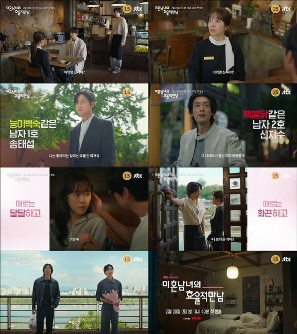 TOPPICK UPハン・ジミン&パク・ソンフンら出演、新ドラマ「未婚男女の効率的な出会い方」予告映像公開2026/02/03 15:42写真=JTBC新土日ドラマ「未婚男女の効率的な出会い方」予告映像キャプチャーハン・ジミンの心を奪うため、パク・ソンフンとイ・ギテクによる熾烈な戦いが始まる。韓国で2月28日午後10時40分に初放送されるJTBC新土日ドラマ「未婚男女の効率的な出会い」(脚本:イ・イジン、演出:イ・ジェフン)が、3次予告映像を通じて、イ・ウィヨン(ハン・ジミン)を中心としたソン・テソプ(パク・ソンフン)とシン・ジス(イ・ギテク)の興味深い三角関係を予告した。教会の中でのイ・ウィヨンとソン・テソプの密着シーンから始まる予告映像は、「昨日、僕たちキスしましたよね」というソン・テソプの大胆な一言が加わり、一気に視線を奪う。これを聞いて驚いたシン・ジスはイ・ウィヨンに向かって「本当に? キスしたの?」と問いかけ、イ・ウィヨンはどうしていいかわからない様子で困惑した表情を見せる。続いて、お互いの存在を強く意識するようになった2人の“魅力対決”が本格的に繰り広げられる。イ・ウィヨンを家まで送るために職場まで訪れたソン・テソプは、「好きなことに効率は求めない」という真心のこもった言葉で優しさを見せる。一方、予想もしない瞬間にぐっと距離を詰め、イ・ウィヨンを驚かせるシン・ジスの存在感も侮れない。「あいつよりずっと楽しませてあげる」というストレートな言葉とともに、年下でありながら、ためらいなく名前を呼び、果敢に近づく姿は、イ・ウィヨンだけでなく、見る者までも深い悩みに陥らせる。そんな2人を前に、イ・ウィヨンの反応にも注目が集まる。甘さと刺激を行き来する“高刺激ロマンス”の中で、イ・ウィヨンは目まぐるしく心を揺さぶられているのだ。特に、プレゼントを手にした2人の男性が同時にイ・ウィヨンの前に現れた瞬間、「大変だ、ドキドキする」というイ・ウィヨンの率直な一言が飛び出し、緊張感とときめきを同時に高める。何よりイ・ウィヨンを中心に絡み合うソン・テソプとシン・ジスの関係は、「未婚男女の効率的な出会い方」が描き出す豊かなロマンスへの期待をより一層高めている。甘いときめきから緊張感まで、それぞれ異なる“恋愛の味”を届けてくれる2人の男性との出会いに、期待が集まる。JTBC新土日ドラマ「未婚男女の効率的な出会い方」は、恋を決意した一人の女性が合コンに臨み、異なる魅力を持つ2人の男性と出会い、惹かれ、揺れ動きながら、真の愛の意味を見つけていく物語だ。 <g stroke="none" stroke-width="1" fill="none" fill-rule="evenodd"><g transform="translate(-511.000000, -20.000000)" fill="#000000"><g><path d="M556.869,30.41 C554.814,30.41 553.148,32.076 553.148,34.131 C553.148,36.186 554.814,37.852 556.869,37.852 C558.924,37.852 560.59,36.186 560.59,34.131 C560.59,32.076 558.924,30.41 556.869,30.41 M541,60.657 C535.114,60.657 530.342,55.887 530.342,50 C530.342,44.114 535.114,39.342 541,39.342 C546.887,39.342 551.658,44.114 551.658,50 C551.658,55.887 546.887,60.657 541,60.657 M541,33.886 C532.1,33.886 524.886,41.1 524.886,50 C524.886,58.899 532.1,66.113 541,66.113 C549.9,66.113 557.115,58.899 557.115,50 C557.115,41.1 549.9,33.886 541,33.886 M565.378,62.101 C565.244,65.022 564.756,66.606 564.346,67.663 C563.803,69.06 563.154,70.057 562.106,71.106 C561.058,72.155 560.06,72.803 558.662,73.347 C557.607,73.757 556.021,74.244 553.102,74.378 C549.944,74.521 548.997,74.552 541,74.552 C533.003,74.552 532.056,74.521 528.898,74.378 C525.979,74.244 524.393,73.757 523.338,73.347 C521.94,72.803 520.942,72.155 519.894,71.106 C518.846,70.057 518.197,69.06 517.654,67.663 C517.244,66.606 516.755,65.022 516.623,62.101 C516.479,58.943 516.448,57.996 516.448,50 C516.448,42.003 516.479,41.056 516.623,37.899 C516.755,34.978 517.244,33.391 517.654,32.338 C518.197,30.938 518.846,29.942 519.894,28.894 C520.942,27.846 521.94,27.196 523.338,26.654 C524.393,26.244 525.979,25.756 528.898,25.623 C532.057,25.479 533.004,25.448 541,25.448 C548.997,25.448 549.943,25.479 553.102,25.623 C556.021,25.756 557.607,26.244 558.662,26.654 C560.06,27.196 561.058,27.846 562.106,28.894 C563.154,29.942 563.803,30.938 564.346,32.338 C564.756,33.391 565.244,34.978 565.378,37.899 C565.522,41.056 565.552,42.003 565.552,50 C565.552,57.996 565.522,58.943 565.378,62.101 M570.82,37.631 C570.674,34.438 570.167,32.258 569.425,30.349 C568.659,28.377 567.633,26.702 565.965,25.035 C564.297,23.368 562.623,22.342 560.652,21.575 C558.743,20.834 556.562,20.326 553.369,20.18 C550.169,20.033 549.148,20 541,20 C532.853,20 531.831,20.033 528.631,20.18 C525.438,20.326 523.257,20.834 521.349,21.575 C519.376,22.342 517.703,23.368 516.035,25.035 C514.368,26.702 513.342,28.377 512.574,30.349 C511.834,32.258 511.326,34.438 511.181,37.631 C511.035,40.831 511,41.851 511,50 C511,58.147 511.035,59.17 511.181,62.369 C511.326,65.562 511.834,67.743 512.574,69.651 C513.342,71.625 514.368,73.296 516.035,74.965 C517.703,76.634 519.376,77.658 521.349,78.425 C523.257,79.167 525.438,79.673 528.631,79.82 C531.831,79.965 532.853,80.001 541,80.001 C549.148,80.001 550.169,79.965 553.369,79.82 C556.562,79.673 558.743,79.167 560.652,78.425 C562.623,77.658 564.297,76.634 565.965,74.965 C567.633,73.296 568.659,71.625 569.425,69.651 C570.167,67.743 570.674,65.562 570.82,62.369 C570.966,59.17 571,58.147 571,50 C571,41.851 570.966,40.831 570.82,37.631"></path></g></g></g> この投稿をIn