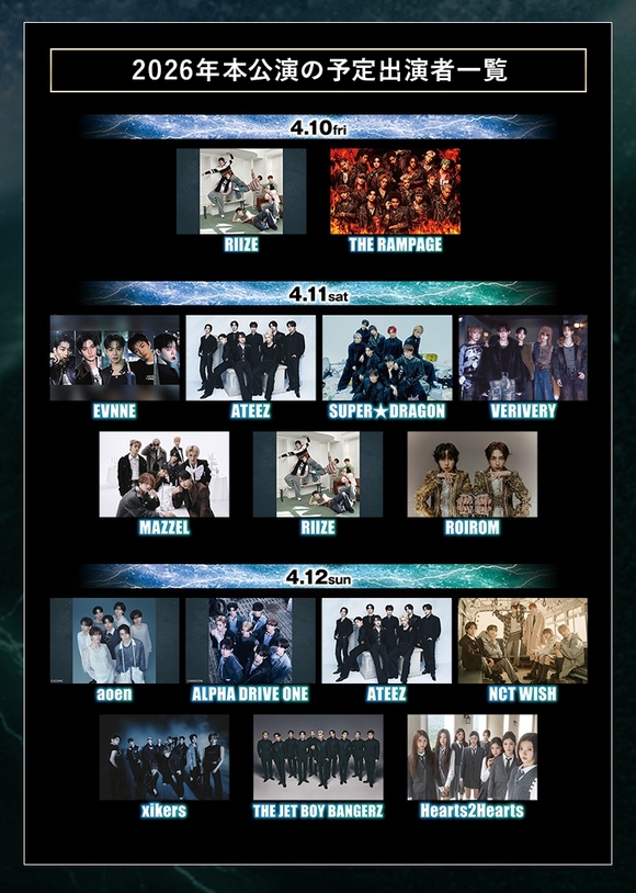 4月12日(日):aoen / ALPHA DRIVE ONE / ATEEZ / NCT WISH / xikers / THE JET BOY BANGERZ / Hearts2Hearts