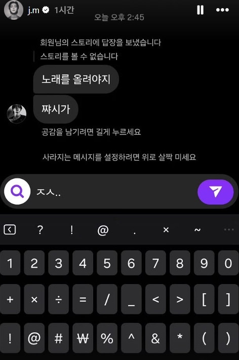 写真=ジミン Instagram彼らはニューアルバム発売を控え、「WHAT IS YOUR LOVE SONG?」チャレンジを展開し、カムバックへの期待を高めている。ジミンはInstagramのストーリーを投稿する過程で、背景の音楽を設定しなかったため、J-HOPEから冗談交じりの指摘を受けた。