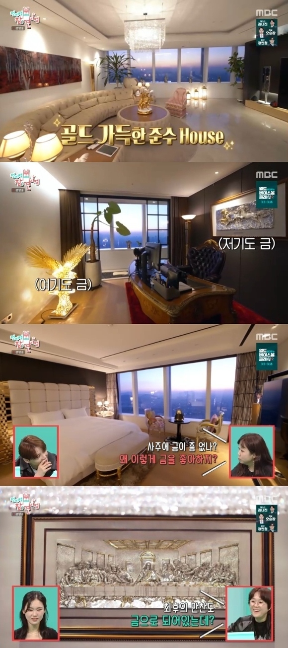公開された資料映像の中のジュンスの家は、金でいっぱいの黄金色だった。ホン・ヒョンヒは「四柱推命に金が足りないの?」と疑う場面も。