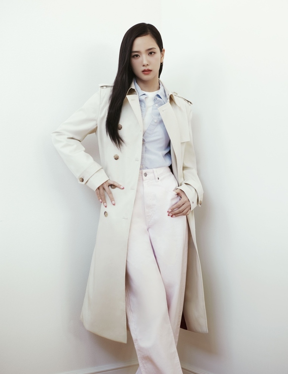 ジスは、リラックス感と洗練を兼ね備えた美意識を表現する、モダンに再解釈されたクラシックアイテムを着用しています。ネイビーとホワイトのストライプカーディガンに、今季のシグネチャーであるバレルジーンズを合わせたスタイリングをはじめ、プレッピーで実用性を備えたリネン素材のキャメルカラーのウエストコートスーツ、そして存在感のあるケーブルニットカーディガンと合わせた、季節の変わり目に活躍するオーバーサイズのトレンチコートなどが登場します。
