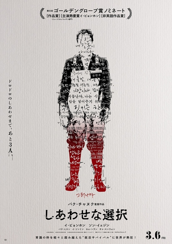 第50回トロント国際映画祭国際観客賞受賞、第83回ゴールデングローブ賞3部門ノミネートを果たした韓国の巨匠パク・チャヌク監督の最新作「しあわせな選択」が、絶賛公開中!