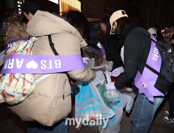 公演直後、数百人のARMYが現場に残ってゴミを収集する姿が捉えられた。