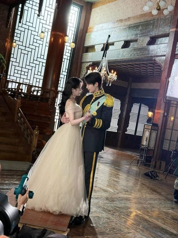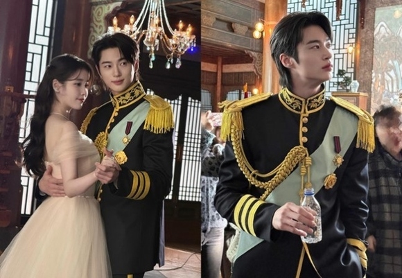 公開された写真には「21世紀の大君夫人」ポスター撮影現場のビョン・ウソクの姿が収められた。彼は制服を着て、ドレスを着たIUとポーズをとっている。