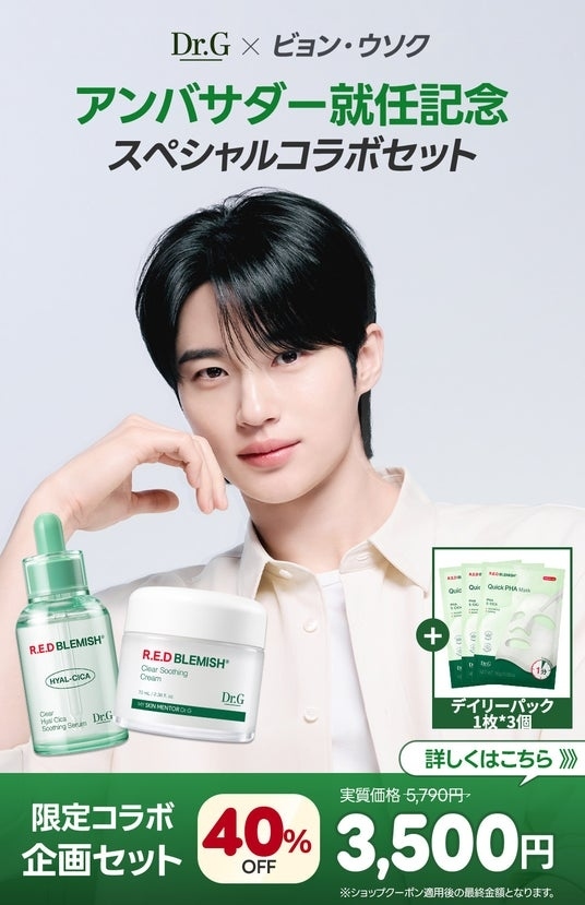 ビョン・ウソクのグローバルアンバサダー就任を記念して、累計販売数3,200万個(本国メーカー累計出荷数(国内外含む)において(期間:2017年01月~2025年09月))を突破したロングセラーアイテム「レッドブレミッシュ クリアスージングクリーム」と、ひんやりとした使い心地で敏感な肌をすこやかに保つ「レッドブレミッシュ ヒアルシカスージングセラム」のビジュアルを制作。