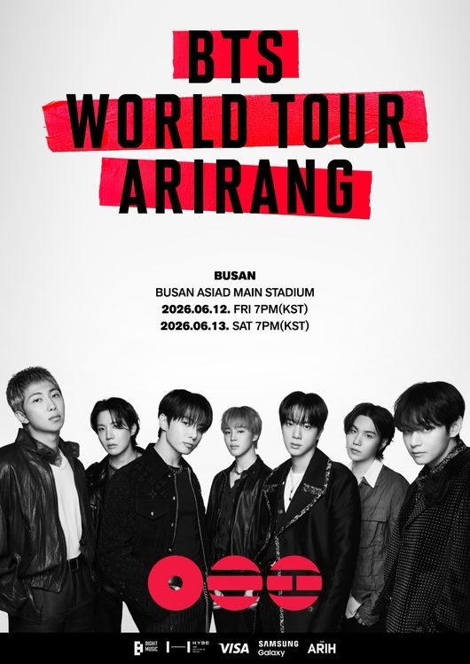 写真=BIGHIT MUSICBTSは本日(13日)午後2時、ファンプラットフォーム「Weverse」に「BTS WORLD TOUR『ARIRANG』 IN BUSAN」の詳細告知を掲載した。これによるとBTSは、6月12~13日の両日、釜山アジアド主競技場で公演を開催する。