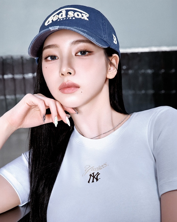 写真=MLB写真の中のKARINAは、MLBのTシャツとシグネチャーボールキャップを中心に、デイリーからアクティブな瞬間まで、様々なスタイリングを披露した。