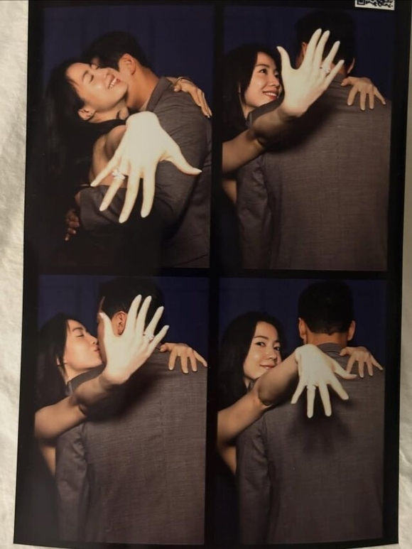 公開された写真の中でファヨンは、明るく微笑みながら幸せそうな表情を見せている。特に、左手の薬指に輝く大きなダイヤモンドの指輪が目を引いた。また別の写真では、婚約者と抱き合い、キスをする姿も公開した。