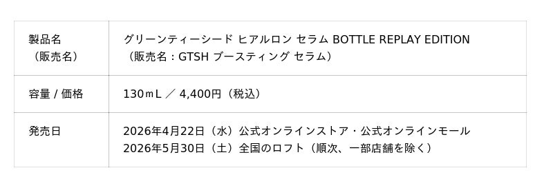 アモーレパシフィックジャパン株式会社(本社:東京都渋谷区)が展開する、自然主義アクティブスキンケアブランド [INNISFREE|イニスフリー] は、回収した空き容器から生まれたサステナブルな限定パッケージを採用した人気の導入美容液『グリーンティーシード ヒアルロン セラム』を、「EARTH DAY(アースデイ)」である4月22日(水)より公式オンラインストア・公式モールにて、5月30日(土)より全国のロフト*にて順次、数量限定で発売いたします。(*一部、対象外の店舗がございます。)