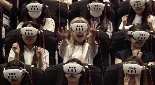 本VRコンサートでは、映画館の座席に設置されたVRヘッドセットを着用することで、目の前に広がる12Kの高精細な映像と、映画館の7.1ch(※)サラウンドシステムによる高品質な音響環境で、臨場感あふれる体験をお楽しみいただくことができます。手が届きそうな“最前列以上の近さ”までアーティストが迫ってくる圧倒的な迫力と、リアルに再現されたバーチャル空間の中で、まるで自分だけのためにパフォーマンスをしてくれているかのような、他では味わえない没入感が味わえるのが魅力です。