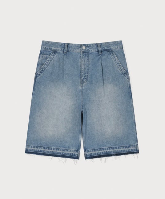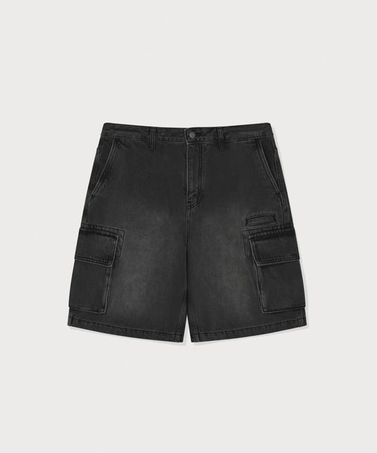 RING-SPUN WIDE CARGO DENIM SHORTS