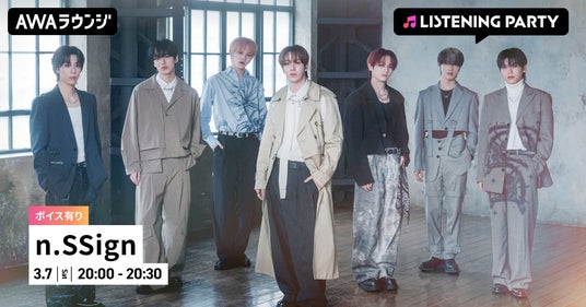 AWA株式会社(本社:東京都港区、代表取締役CEO:冨樫晃己)が運営する、サブスクリプション型(定額制)音楽ストリーミングサービス「AWA(アワ)」は、2026年3月7日(土) 20:00~20:30の30分に渡り、無料で誰でも参加できるオンライン空間「ラウンジ」で、n.SSignを特集したリスニングパーティーを開催いたします。